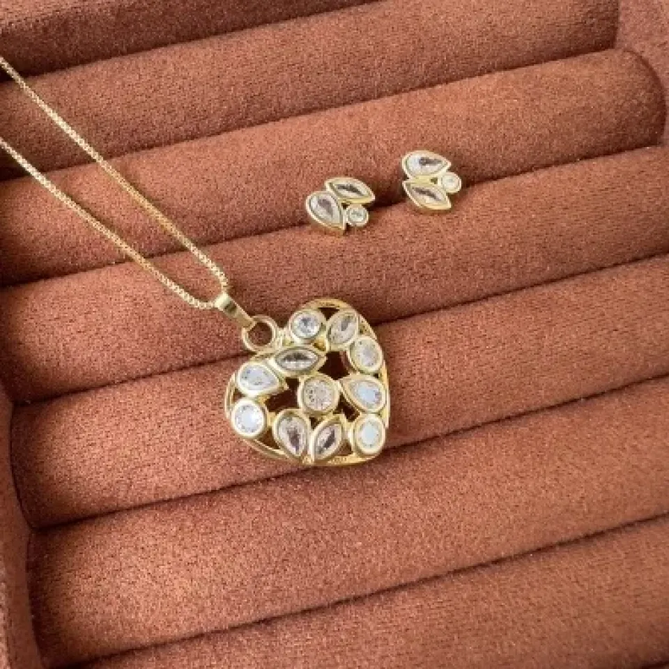 Conjunto coração luxury esmeralda...