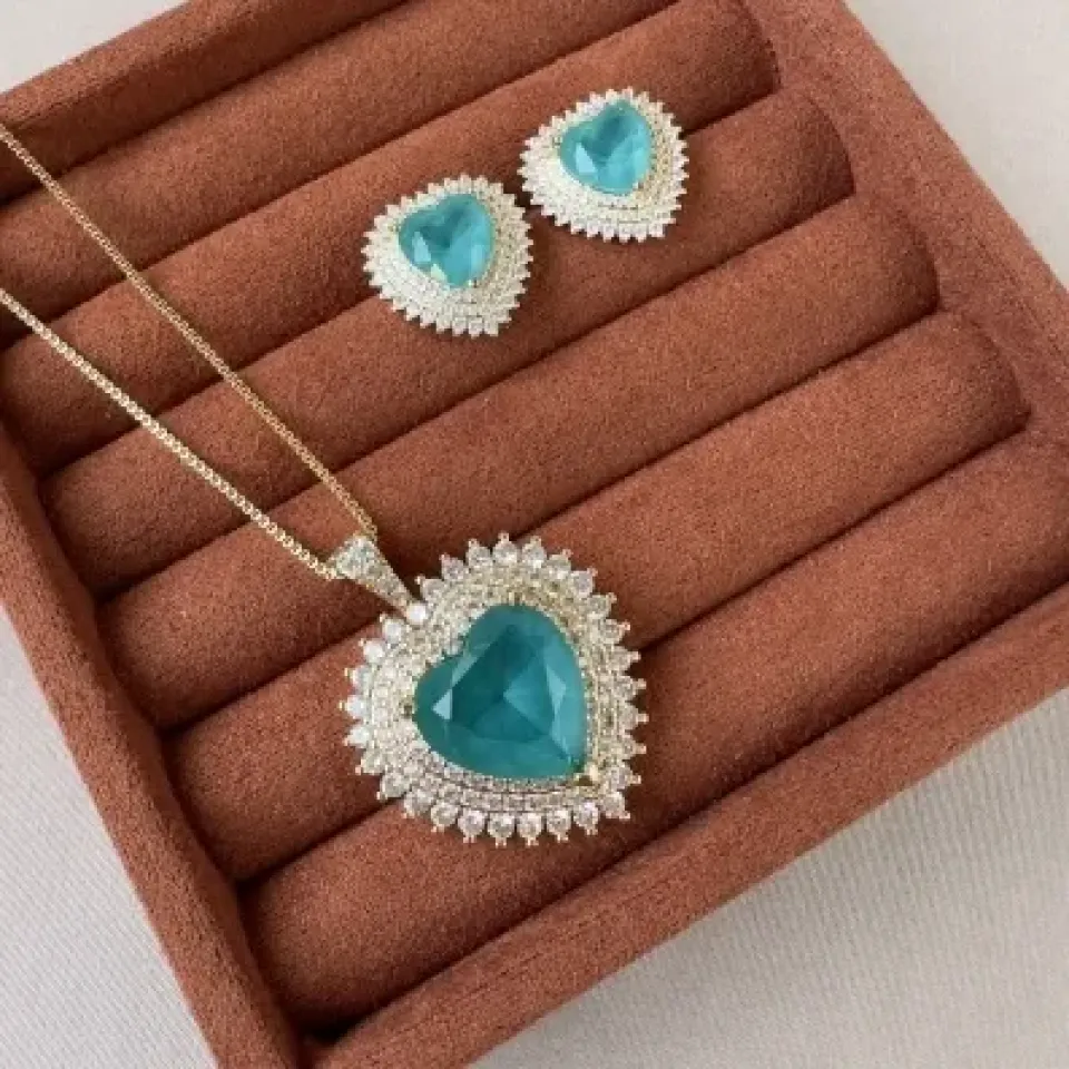 Conjunto coração luxury esmeralda...